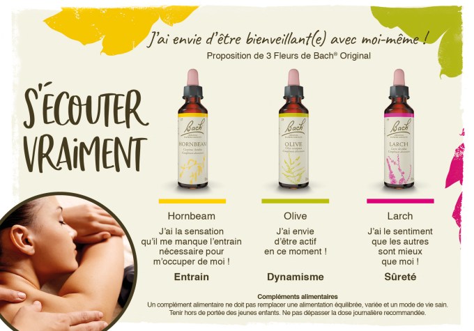 clients Spa, elle met au point quelques cartes, véritable méthode instinctive et précise pour créer des rituels dédiés aux instituts et Spas. Ces cartes permettent d’orienter un choix de Fleurs de Bach afin de traiter les émotions perturbées. C’est une occasion d’apprivoiser lucidement ses émotions et d’utiliser ses potentiels pour un bon équilibre de vie.