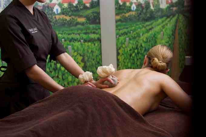 rituel d’accueil : un massage des pieds avec la crème de Vinésime et un petit coussin plein de noyaux de cerises, chaud posé sur mes pieds qui me donne envie de roucouler d’aise. Une étape d’ouverture respiratoire en conscience du schéma corporel avec une guidance de paroles apaisantes « Vous êtes en Bourgogne, ressentez les bourgeons de cassis, sentez la nature… ». J’y étais. Immergée dans un bien-être absolu !