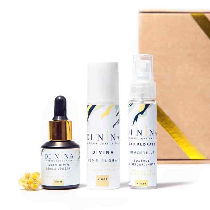 - Le Sérum à l’immortelle SOIN DIVIN, ultra concentré en huile essentielle d’Hélichryse. Il active de renouvellement cellulaire, affine le grain de ma peau et m’apporte fermeté et éclat
