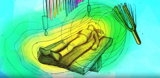 Qui est Isabelle Géry-Haugmard et que fait-elle comme travail ? Elle explique qu’elle est une thérapeute par le son, utilisant les vibrations sonores afin de faire une déprogrammation des mémoires négatives, pratique les constellations familiales dans le cadre d’une psycho-généalogie, la thérapie quantique par le son et surtout à travers tous ses outils, favorise un rééquilibrage, une libération et une auto-créativité de ses consultants. Tout d’abord, pour la consulter, il faut le vouloir car son village, les Brouzils, est paumé au cœur de la nature vendéenne, mais son cabinet ne désemplit pas. Une maison entourée d’un jardin. On enlève ses chaussures avant d’entrer et on attend dans une pièce pleine de l’évocation de ses activités : photos, tableaux, instruments de musique, etc. On entre dans le cabinet lui-même : une table de soin qui est spéciale taillée dans une pierre très particulière, deux chaises qui se font face pour échanger avant et après le soin une foule d’instruments sonores tout autour de la pièce (Diapasons, bols tibétains, bols de cristal, tambours, etc.
