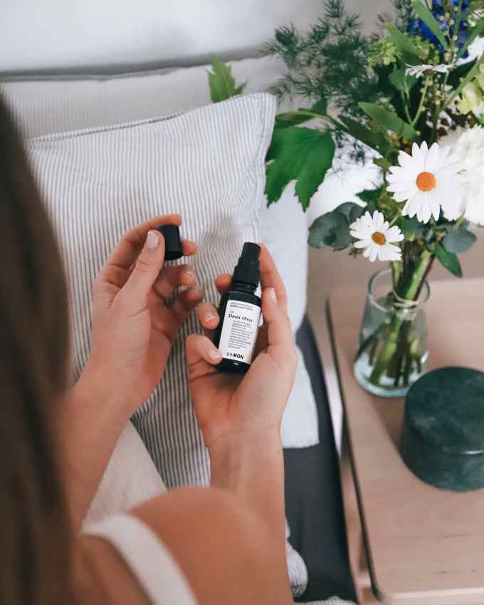 L’aromachologie est le cœur du réacteur. C’est elle qui va donner naissance à cette nouvelle parfumerie du quotidien. Par exemple, la synergie « Moment présent » peut être une routine du matin pour vous ancrer. Pour respirer un parfum vous pouvez avoir plusieurs modes : le parfum lui-même ou une brume pour la maison, ou une bougie. Lorsque vous rentrez chez vous après une journée de travail vous prenez la synergie « lâchez-prise » qui va vous permettre de vous reconnecter à vous-même. Et puis vous avez la synergie « doux rêves » qui peut être la routine du soir pour entrer dans un pré-sommeil. Il y a une Cologne, ma préférée qui s’appelle « myrrhe et encens » qui est méditative et que j’utilise comme Cologne généreuse que je mets sur mes vêtements et sur moi.