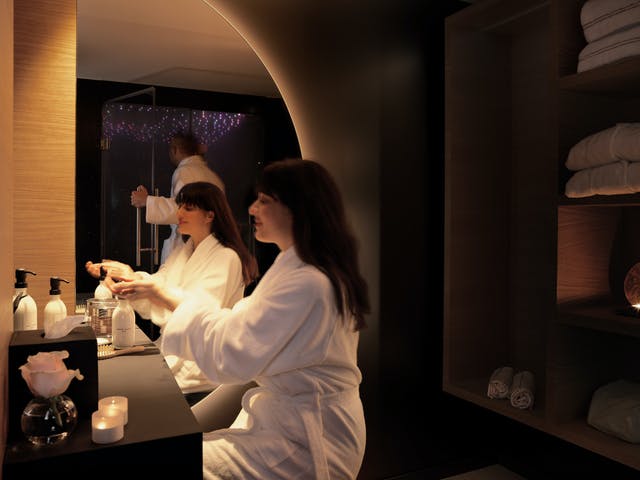 J’observe et me demande en quoi ce que je vois est un spa et puisque je connais l’intuition et la créativité d’Isabelle, qu’à-t-elle capté d’un renouveau du concept spa ? Tout, absolument tout est parfait, chic, élégant, pensé. Je connais des spas dans le monde entier, luxueux. Rien à voir avec ce que je vois. C’est en même temps un appartement particulier et un lieu de bien-être où vous allez recevoir les meilleurs soins. Le luxe ici est dans les matières, les formes rassurantes, mais également dans la pertinence des objets utiles. La spa directrice m’accueille en venant à ma rencontre et après une installation dans la réception et comme je suis en avance pour mon soin, elle me propose une visite. Ici point de cabine de soin. Uniquement des spa-suites qui sont nommées des capsule ou loggias, grandes, décorées comme des salons personnels, incluant toutes un hammam privatif et un salon de déshabillage. Les loggias doubles ont un grand jacuzzi pour deux.
