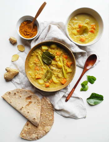 Un chapitre est consacré au végétarisme et un autre, aux recettes de base de la cuisine indienne : le ghee, le yaourt maison qui est très intégré en inde, le fromage frais, les laits végétaux, les chapatis.