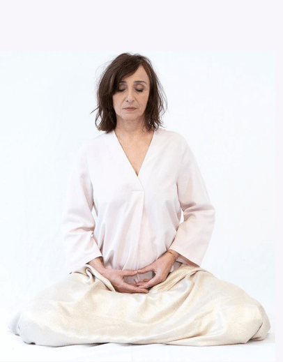 Elle découvre la méditation. Révolution dans sa vie. Elle fait le stage « respirer sa vie » avec Pierre Philippon, maître zen et repart chez elle avec le Zazen. Il disait aux participants : « Si vous faites cela tous les jours, votre vie va changer. » Effectivement, elle pratique toute seule, tous les jours et sa vie a complètement changé. Parallèlement à cela, elle pratique pendant 7 ans le Kinomichi avec Maitre Noro. Elle acquiert une conscience du Hara et des mouvements en spirales. Puis elle rencontre la technique vocale créée par Marie-Jeanne Rodière à base de vibrations, bouche fermée qui change complètement sa voix. Elle nous raconte : « Pendant cette carrière de chanteuse, j’ai pris des cours de chant lyrique. J’étais debout, je faisais des vocalises, mais le corps n’est pas tant engagé que cela. Je n’accédais pas à mes aigus facilement. Je n’avais pas beaucoup de résultats. Avec la technique de Marie-Jeanne Rodière, je découvre l’intériorité du corps et ma voix change, j’accède à mes aigus facilement. Et donc, je comprends que dans la posture du Zazen ainsi que dans les arts martiaux, l’alignement des cervicales le Chi circule. Je me rends compte alors que j’ai une qualité pour transmettre cela aux autres et je commence à créer ma pédagogie Voix et Souffle. La voix m’a mise sur le chemin de l’énergie. »