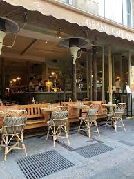 Au cœur de la rue animée et bruyante du Faubourg Saint Denis, ce « Grand café » vous invite à une véritable expérience gastronomique. Je me souviens de la première fois que je me suis installée sur la terrasse et qu’au feeling, j’ai commandé quelques mezzedes. Avec la chaleur de l’été, je n’avais pas envie d’un vrai plat. J’avais entendu parler du tarama mousseux et peu fumé, servi avec un pain torsadé farci d’olives kalamata. C’est dingue ! saveur rare ! Ce jour-là, j’ai dégusté les beignets de courgettes d’une fraicheur inégalée. La courgette avec son petit gout à la fois herbacé et légèrement amer se déployait sans être écrasé par la pâte à beignet très légère et vous dégustez cela en trempant vos beignets dans un tzatzíki aillé à souhait. Tout cela servi très généreusement. Mon coup de cœur a déclenché des invitations à découvrir à tous mes copains et j’y suis revenue pour partager cette découverte. Je peux vous citer les frites à l’origan servies avec de la feta râpée. Compliqué à imaginer. Il faut déguster. Je citerai également les couteaux justes saisis au grill avec ail et persil. On se croirait sur une plage hellénique. Tout cela servi avec un ouzo raffiné ou des vins grecs.