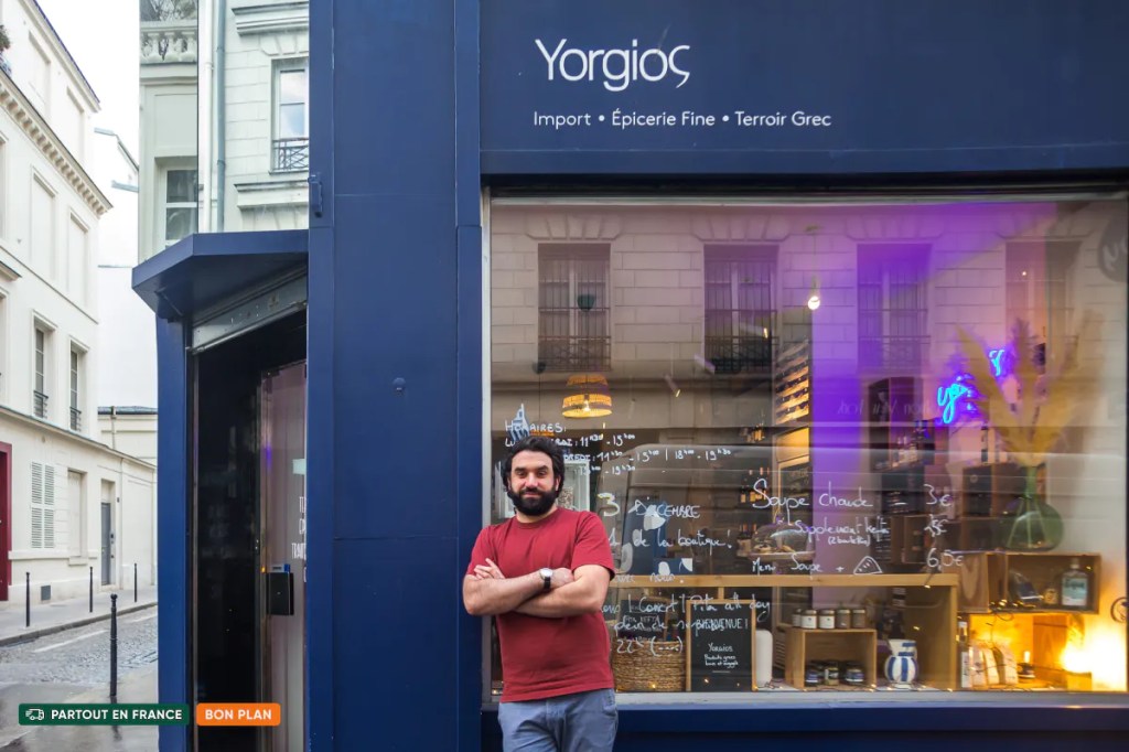 Au coin de 2 rues passantes du 10e arrondissement de Paris, vous trouverez l’épicerie traiteur Yorgios. Vous êtes chez Alexandre Cozzika. Yorgios est le nom de son père. Vous pouvez déguster sur place ou emporter chez vous. Tout est savoureux et étonnant. Cet adepte de la naturalité, des circuits courts et d’une sélection exigeante de fournisseurs vous propose des plats traditionnels au goût de la maison. Découvrez ses pitas aux keftas et à la salade, la moussaka maison (au butternut en hiver), des tirópita (feuilletés au fromage, déclinés en huit garnitures différentes) pour l’apéro. Le miel d’anis et de fenouil cru à la saveur étonnante, en provenance directe de l’île d’Eubée. Laissez-vous séduire par le goût subtil de grenade du « velours de grenade », entre vinaigre et mélasse au parfum fruité et acidulé, vieilli deux ans en fût. Ce dénicheur de produits aime souligner que « la richesse de la Grèce, ce sont ses îles », que ce soit pour le vin, les herbes séchées ou les fruits, comme en témoignent les délicieuses confitures de figues de Syros transformées sur l’île même. Des saveurs et des savoir-faire typiques que ce gourmet franco-grec a à cœur de faire découvrir et déguster ! sa sélection vient de petits producteurs engagés et passionnants auxquel Alexandre est resté fidèle. Il dit lui-même que Yorgios s’engage à mettre le plaisir gustatif au cœur de ses exigences en proposant le meilleur des produits grecs issus directement des producteurs. Il source les produits directement auprès de petits producteurs de la Grèce. Que ce soit la région de l’Attique, des Cyclades, du Péloponnèse ou de Chalcidique et de Crète. Toutes les régions seront représentées avec le même objectif en tête : que tous les produits soient délicieux, mais aussi ludiques et dans l’air du temps. Car le terroir grec ne se limite pas seulement à l’huile d’olive, au miel et au vin résiné. L’objectif de Yorgios est de vous faire découvrir toute sa richesse. Yorgios agit aussi pour la Nature et l’Environnement – celle des producteurs avec laquelle ils travaillent. L’objectif de Yorgios est aussi de mettre en lumière ces parcours et portraits, parfois atypiques mais déterminés de ces producteurs qui se battent pour une autre manière de consommer. Yorgios s’engage à vous faire voyager en Grèce à travers ses produits. La nouvelle Grèce, celle de la modernité. La nouvelle génération qui s’est relevée de la crise pour être plus imaginative et plus forte.
