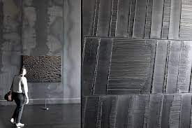 Allez ! parlons de « l’outre-noir du peintre Soulages. Il ne pouvait en être autrement. Lui qui au cours de sa vie créative n’a cessé de se consacrer à l’exploration des ressources picturales du noir. La parfaite imperfection révélée par la peinture de Soulages est que son essence achevée est l’inachèvement. Oui. L’injonction du noir est « vous qui me voyez, sans rien voir, continuez ! »