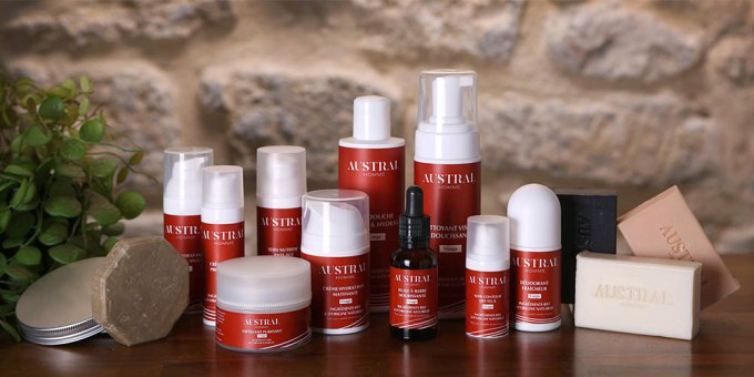 Partant « d’une page blanche », les deux amis, créent cette marque AUSTRAL. Ils habitaient près de Montpellier, donc ils décident de faire fabriquer en Occitanie. Ils ont cherché des ingrédients. Leur choix : être naturel ou bio, circuit court, éco-responsables, avec un impact carbone le plus réduit possible. Ils ont cherché des labos qui avaient la compétence de formulation de produits professionnels, avec d’excellents ingrédients, des allégations solides et vérifiées.