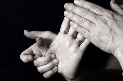 - Ponçage profond avec la pulpe d’un pouce de la zone entre pouce et index qui est un point majeur d’acupuncture du gros intestin