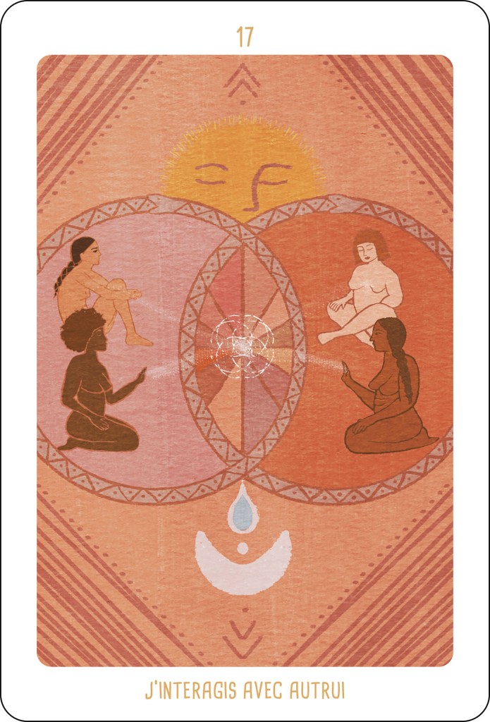 Les 49 cartes s’organisent en 7 familles reliées aux 7 chakras.